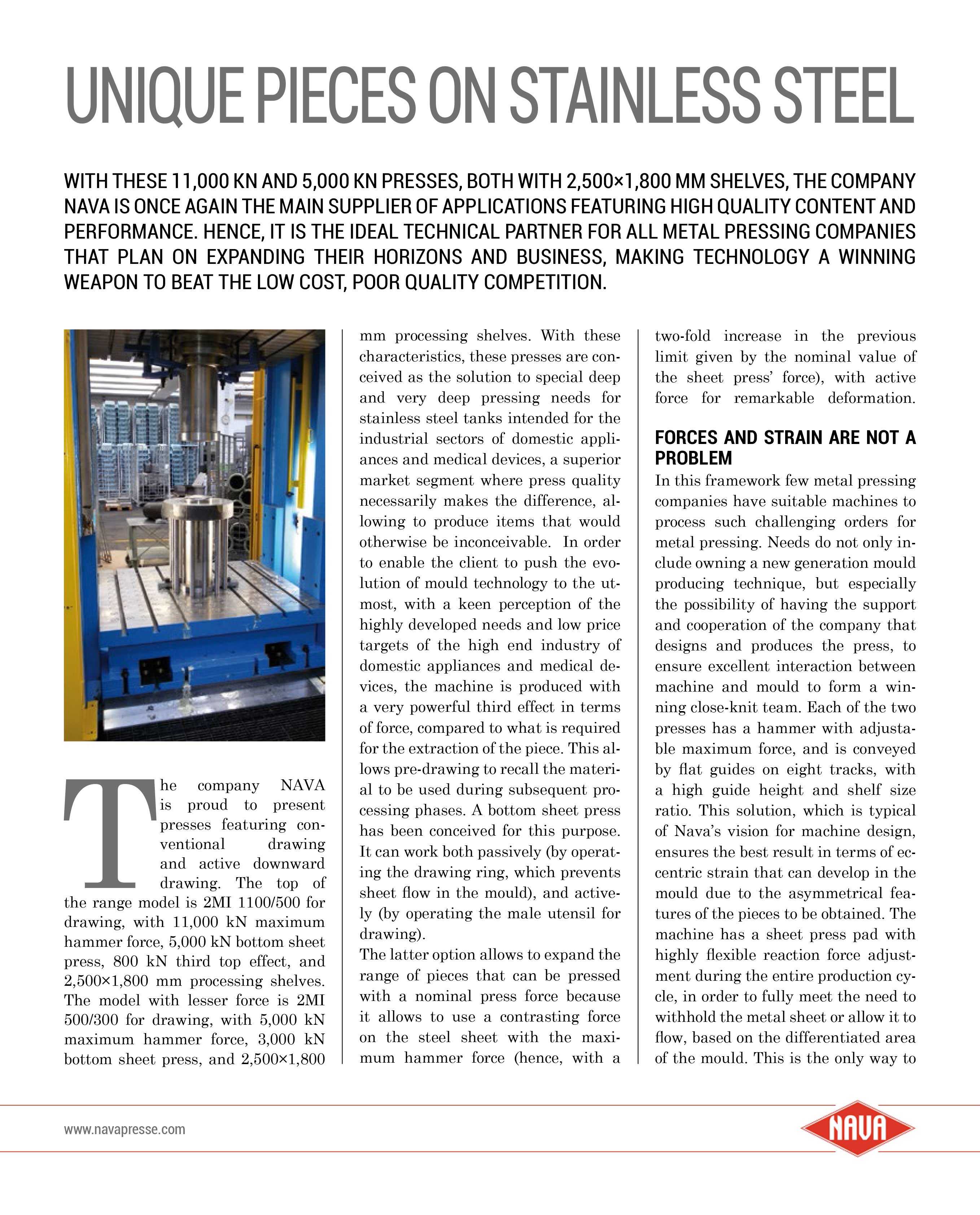 The translation of the full article published in the magazine “Lamiera news – october 2015 ” is reported below.